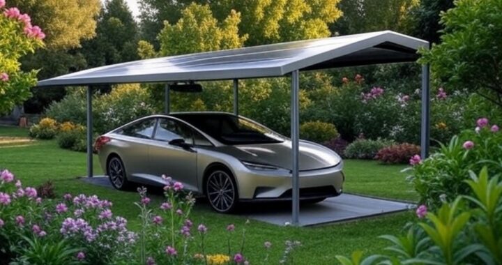 Un carport solaire dans son jardin combine protection pour les véhicules et production d’énergie renouvelable....